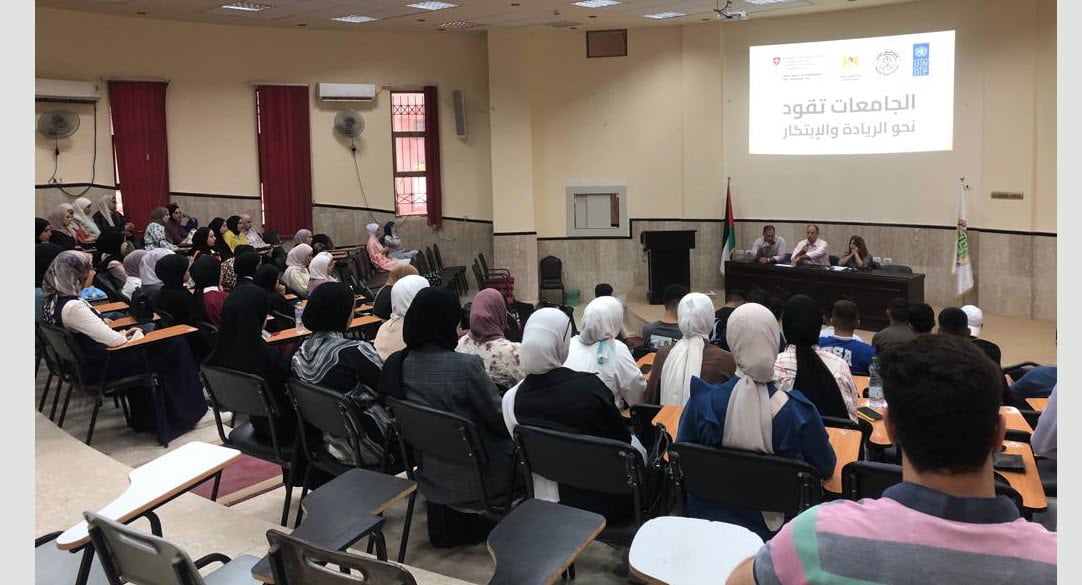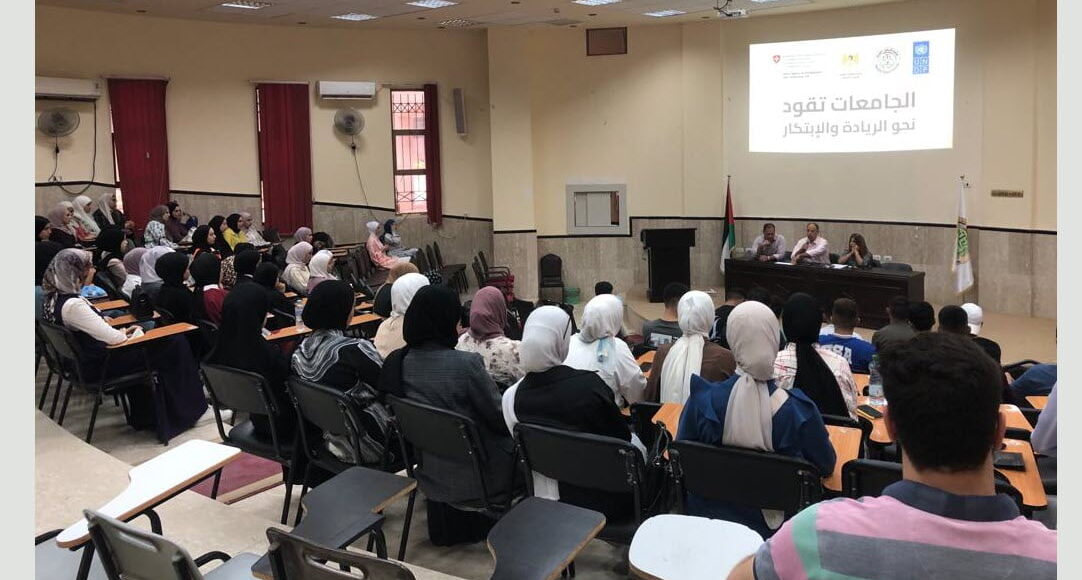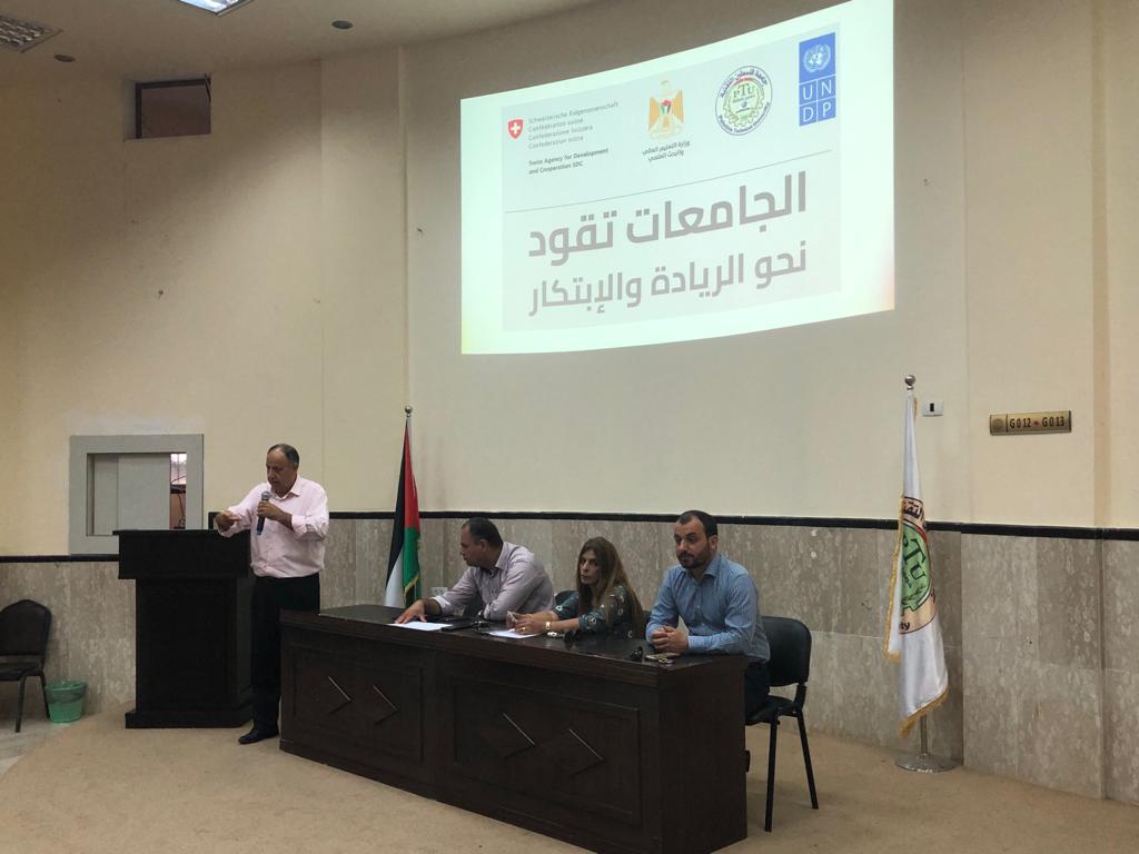 والابتكار، والذي يتم تنفيذه من قبل برنامج الأمم المتحدة الإنمائي / برنامج مساعدة الشعب الفلسطيني بالتعاون مع وزارة التعليم العالي والبحث العلمي وبتمويل من الوكالة السويسرية للتنمية والتعاون، حيث يهدف المشروع إلى المساهمة في خلق فرص عمل جديدة وتعزيز التمكين الاقتصادي للشباب والنساء من خلال تعزيز الدعم للشركات الفلسطينية الناشئة وريادي الأعمال. كما يهدف أيضاً لتعزيز التعاون بين الجهات الفاعلة للنظام البيئي الخاص بالابتكار من خلال تعزيز الروابط والتكاملية بين القطاعات الأكاديمية، القطاع الخاص، وحاضنات الأعمال التجارية.
