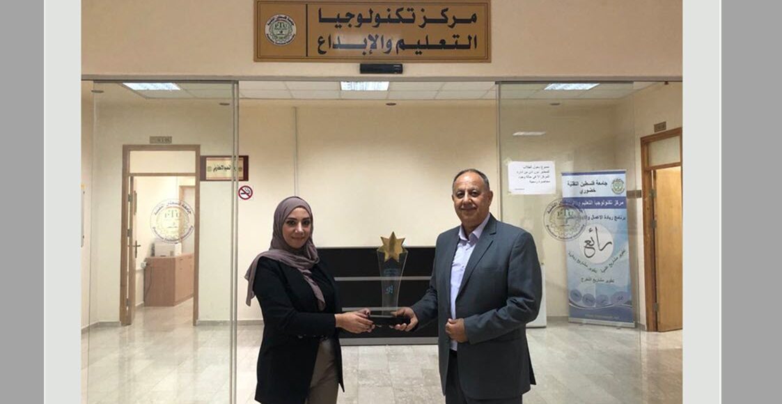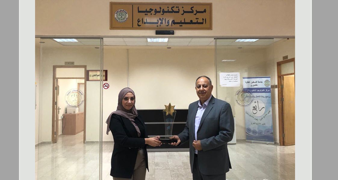 تسلّم الاستاذ أمجد المصري مدير مركز تكنولوجيا التعليم والابداع درع الفوز بجائزة أفضل شركة طلابية على مستوى الجامعات الفلسطينية من مؤسسة انجاز فلسطين ممثلة بمديرة فرع المؤسسة في طولكرم المهندسة دانيه حبايب، حيث شارك فريق الشركة الطلابية من جامعة فلسطين التقنية خضوري  في مسابقة الشركة الطلبية التي عقدت في 23/8/2023 والتي نظمتها مؤسسة انجاز فلسطين على مستوى الجامعات الفلسطينية حيث حصل الفريق على الجائزة الكبرى على مستوى الوطن. وسيمثّل الفريق دولة فلسطين في مسابقة انجاز العرب على مستوى الجامعات العربية والمزمع عقدها في دولة قطر قبل نهاية السنة الحالية.