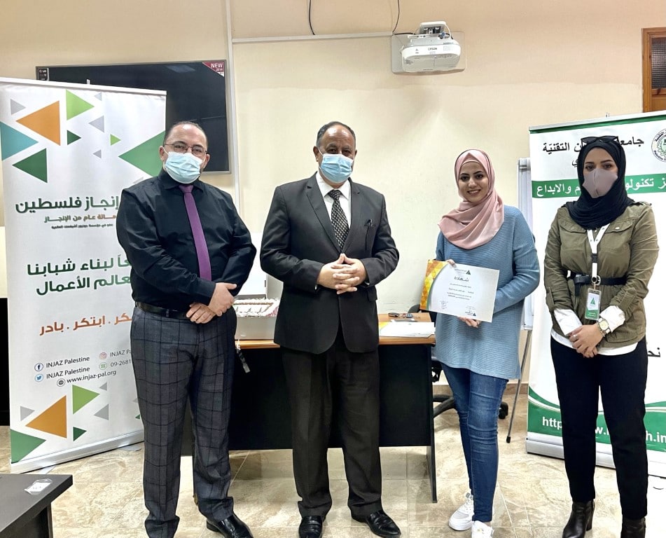 احتفل مركز تكنولوجيا التعليم والابداع بجامعة فلسطين التقنية – خضوري ومؤسسة انجاز فرسطين فرع طولكرم بتخريج الدورة الاولى من برنامج الشركة الطلابية ، والتي شارك بها 21 طالب وطالبة من الجامعة ، حيث استطاع الطلبة تسجيل قصة نجاح باطلاقة شركة طلابية تحت اسم green-t ، وقد حصلت الشركة على مركز افضل مساهمة مجتمعية في مسابقة الشركة الطلابية على مستوى الجامعات ، والتي نظمتها مؤسسة انجاز فلسطين في نهاية عام 2020 .