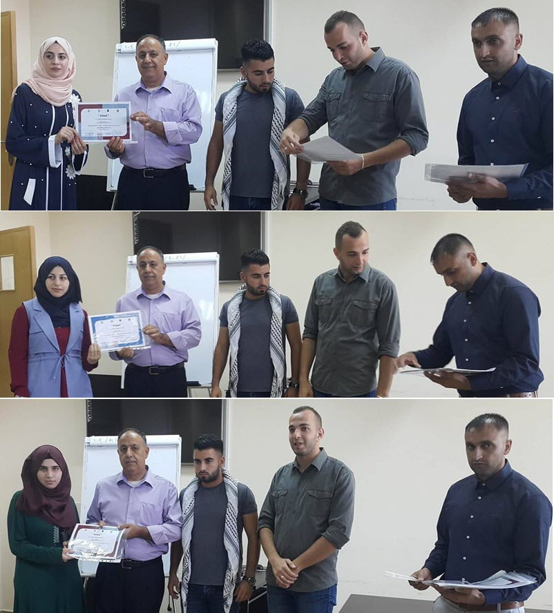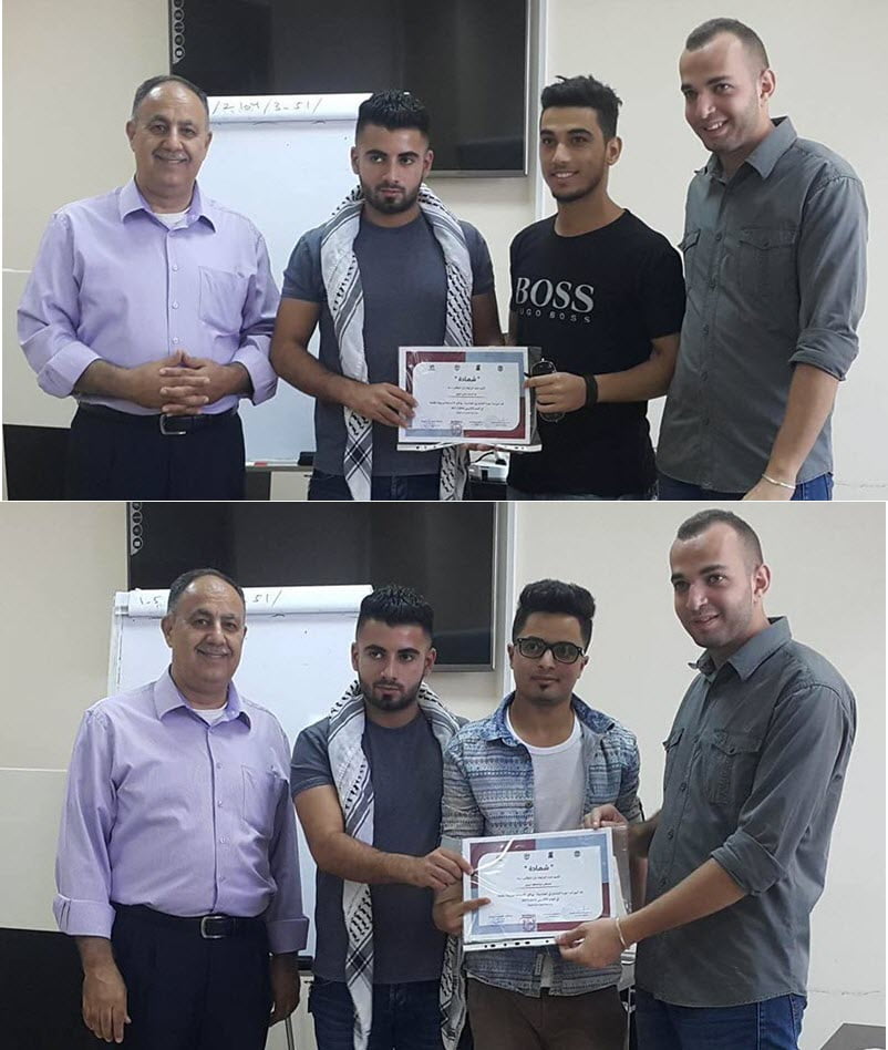 بحضور ألاستاذ أمجد المصري مدير مركز تكنولوجيا التعليم والابداع ، والسيد مؤيد الدنا والسيد عبد عدوان ممثلين عن جمعية الشباب الفلسطيني للتنمية المجتمعية، ورئيس مجلس اتحاد الطلبة الاخ فادي بريكي والأخ وسيم ابو شمس منسق حركة الشبيبة في جامعة فلسطين التقنية- خضوري ، تم اليوم تخريج دفعة جديدة من المشاركين في الدورات التي عقدت في المركز خلال الفصل الثاني من العام الاكاديمي 2016/2017.
