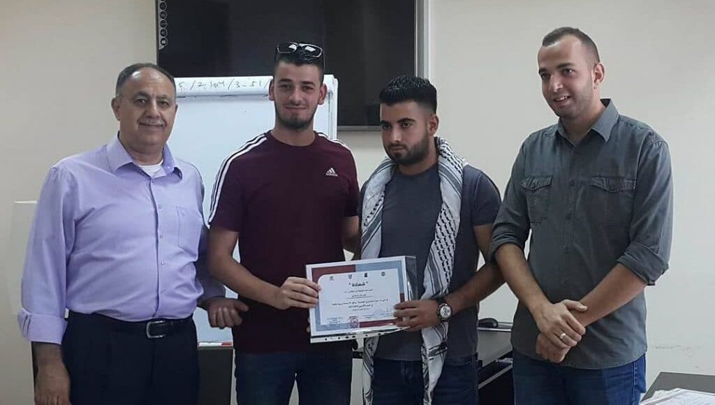 بحضور ألاستاذ أمجد المصري مدير مركز تكنولوجيا التعليم والابداع ، والسيد مؤيد الدنا والسيد عبد عدوان ممثلين عن جمعية الشباب الفلسطيني للتنمية المجتمعية، ورئيس مجلس اتحاد الطلبة الاخ فادي بريكي والأخ وسيم ابو شمس منسق حركة الشبيبة في جامعة فلسطين التقنية- خضوري ، تم اليوم تخريج دفعة جديدة من المشاركين في الدورات التي عقدت في المركز خلال الفصل الثاني من العام الاكاديمي 2016/2017.