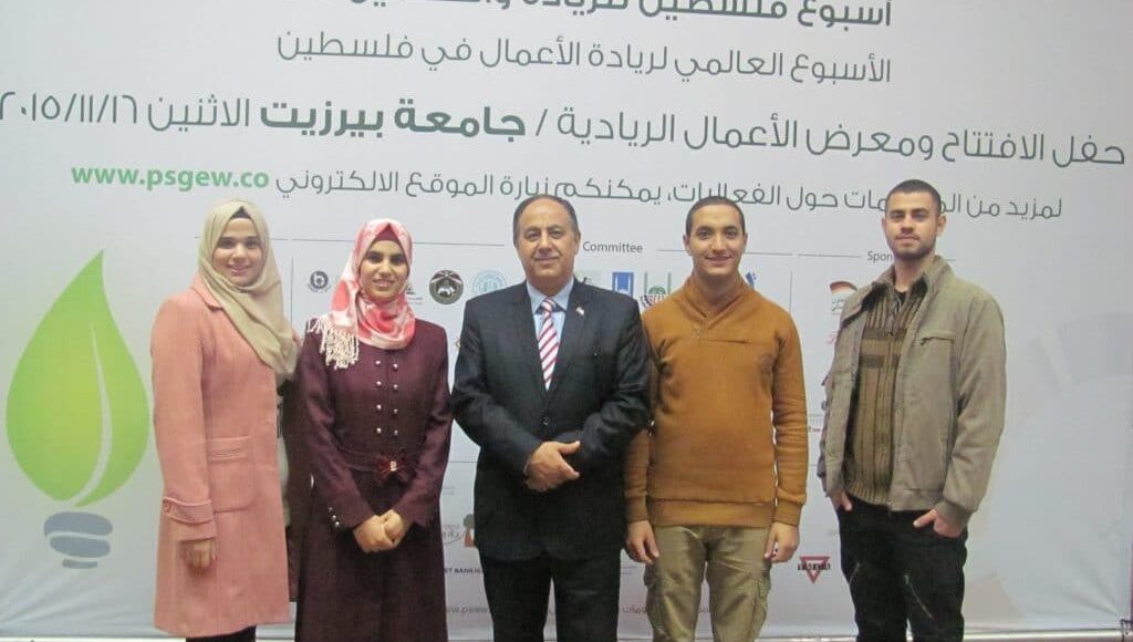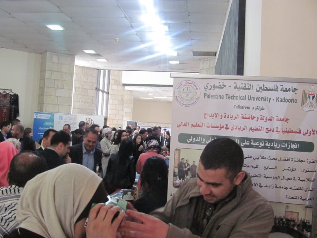شاركت جامعة فلسطين التقنية – خضوري في اسبوع فلسطين للريادة والتشغيل الذي افتتح يوم الاثنين الموافق 16/11/2015 بجامعة بيرزيت تحت رعاية وحضور معالي دولة رئيس الوزراء د.رامي الحمدالله ومعالي وزير الاشغال ورئيس جامعة بيرزيت ومجموعة من رجال الاعمال وممثلي المؤسسات الداعمة للريادة .