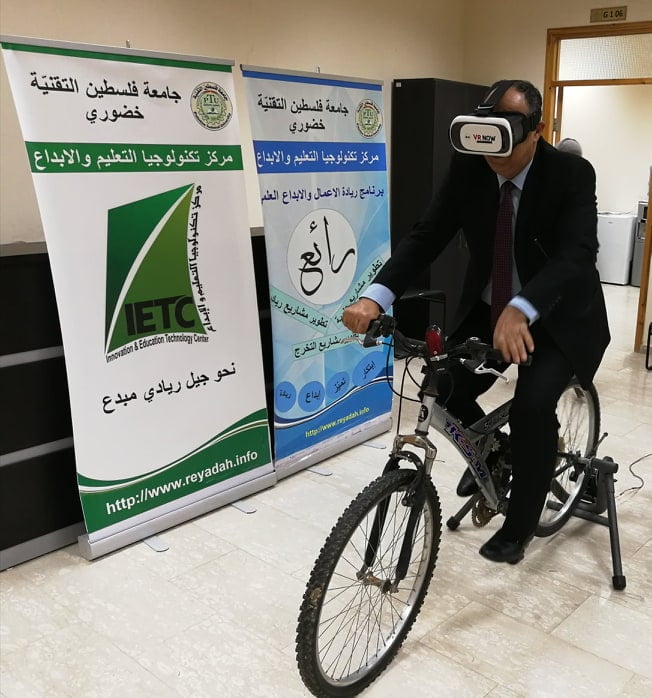 مشروع ريادي ابداعي، يعمل على توظيف التكنولوجيا لقيادة الدراجة الهوائية في البيئة الافتراضية، ويعتمد على بناء بيئات افتراضية Virtual Reality ، ومن ثم ربطها بالدراجة الهوائية مما يمكن الشخص من قيادة الدراجة بشكل طبيعي وهي ساكنة بمكانها ، ضمن البيئة الافتراضية التي يختارها. قام مركز تكنولوجيا التعليم والابداع بتوفير الامكانيات اللازمة لبناء النموذج الاولي والذي تم اختباره بنجاح.