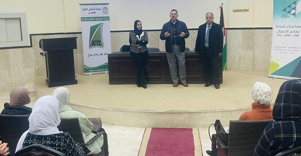 أطلق مركز تكنولوجيا التعليم والابداع بالشراكة مع مؤسسة انجاز فلسطين فعاليات مسابقة الشركة الطلابية للعام 2023 ، وذلك بحضور أ.د. رزق استيته مساعد رئيس وأ.امجد المصري مدير المركز وأ.دانيه حبايب مدير مؤسسة انجاز فرع طولكرم والمهندس علي عودة من شركة التيسير للاعمار وأسماء مرشد موظفة في مؤسسة انجاز والطلبة الراغبين بالمشاركة في المسابقة.